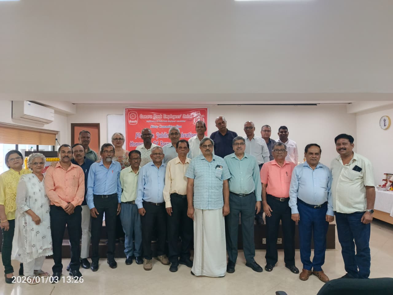 State Committee Goa, in connection with the Platinum Jubilee Celebrations of our Union conducted a function to honour the former functionaries of the State Committee at EDC Hall, Panaji, Goa today(03/01/2026).